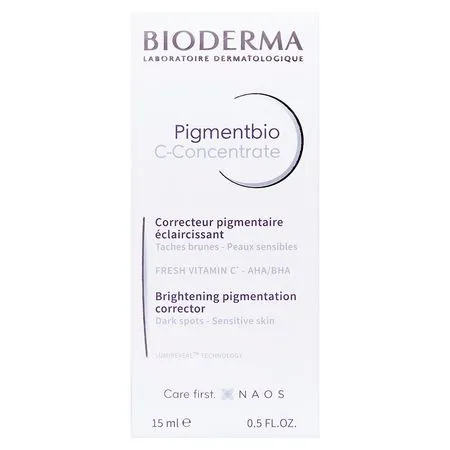 O Pigmentbio C Concentrate possui textura sérum ultra fresca, testada e aprovada em peles mistas a oleosas. O sérum concentrado clareador e antioxidante Pigmentbio C Concentrate ilumina, corrige e uniformiza a tonalidade da pele. Fórmula com combinação inédita de potentes ativos clareadores à vitamina C fresca: – patente LumiRevelal Technology™, com ação clareadora que age nas 3 etapas do processo de formação da hiperpigmentação; – 10% de ácidos AHA e BHA (ácido glicólico e salicílico), com efeito peeling sem descamação que acelera a renovação celular para ajudar a eliminar marcas e tornar a pele mais macia e radiante; – vitamina C fresca e ativada no primeiro uso, com liberação prolongada, com ação iluminadora que uniformiza a tonalidade da pele. Pigmentbio C Concentrate ainda oferece benefícios adicionais à ação clareadora: – dupla ação antioxidante, com a sinergia entre as vitaminas C e E, ajudando a prevenir o envelhecimento precoce da pele; – ação hidratante com niacinamida, que preserva a barrira de proteção da pele e hidrata por 08h. Embalagem inovadora, que preserva a potência da vitamina C até o momento do primeiro uso: pressione a tampa do produto para incorporar instantaneamente a vitamina C fresca e estabilizada ao produto. Em 4 semanas, com apenas 1 uso por dia, a pele torna-se visivelmente mais uniforme, iluminada e protegida contra o surgimento de novas marca: -41% tmanha das manchas; 97% pele mais iluminada; – 100% de aprovação das usuárias. Pode ser usado em associação a outros tratamentos clareadores. Fórmula de alta tolerância. Uso preferencialmente noturno. Usar sempre em associação a um protetor solar de alto FPS.
